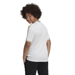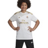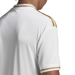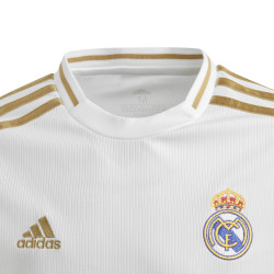 Juniorska replika oficjalnej wyjazdowej koszulki Realu Madryt na sezon 2019/20. Koszulka od adidas o standardowym, szerszym w tułowiu krój, prostym fasonie i zaokrąglonym dekolcie. Koszulka posiada krótkie rękawy. Koszulka została wykonana z dzianiny o podwójnym splocie. Jej wstawki z siateczki pod ramionami zapobiegają nadmiernemu poceniu, a odprowadzający pot materiał Climalite zapewnia świeżość. Koszulka posiada naszyte godło Realu Madryt.