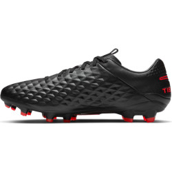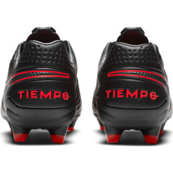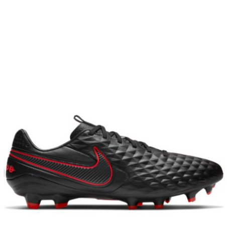 Miękkie wykończenie z wysokiej jakości cielęcej skóry pozostawiono bez szwów, co tworzy profilowaną teksturę w romby, a co za tym idzie ułatwia zachowanie kontroli nad piłką. Model ten zapewnia bardzo dobrą stabilność oraz przyczepność. Korki w kształcie litery V oraz zmodyfikowane stożkowe korki są odpowiedzialne za stabilność i niezawodną, wielokierunkową przyczepność do podłoża o twardej murawie. W modelu tym wkładka zapewnia wyjątkową amortyzację o niskim profilu. Najlepszą przyczepność w Nike Tiempo Legend 8 Pro FG można osiągnąć na lekko mokrej krótkiej murawie.