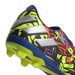 Buty piłkarskie do gry na sztucznych i naturalnych nawierzchniach twardych Pokaż swoje umiejętności i siłę nieprzewidywalności w butach adidas Nemeziz. Te młodzieżowe buty piłkarskie prezentują charakterystyczne logo Messi. Cholewka z materiałów syntetycznych ma giętki język, który blokuje stopę i umożliwia wykonywanie sztuczek na murawie. Buty posiadają jednoczęściowy język. Te buty piłkarskie posiadają miękką, syntetyczną cholewkę z minimalną liczbą szwów, aby zapewnić wygodę na każdym kroku. Podeszwa zewnętrzna z wtryskiwanego TPU wspiera Twoje wyjątkowe umiejętności na naturalnej nawierzchni. Charakterystyczne logo Messi dopełnia ich styl.