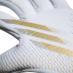 Najlepsi bramkarze nie reagują. Są nieustannie gotowi. Bądź piłkarskim numerem jeden dzięki rękawicom adidas X Pro. Chwytliwe lateksowe wnętrze dłoni jest lekko wyprofilowane, aby zapewnić dłoniom przyjęcie idealnej pozycji na przyjęcie piłki. Wypukła struktura w dolnej części poprawia sprężystość i pochłanianie energii uderzenia. Dzianinowy otwór bez pasków i grzbiet dłoni wykonany z lekkiej siateczki gwarantują przylegające, dokładne dopasowanie. Grzbiet dłoni ze specjalnej siateczki. Elastyczna opaska doskonale przylega do nadgarstka, odpowiednio go wspierając. Lateks URG 2.0S zapewnia przyczepność i pochłanianie energii uderzenia