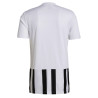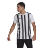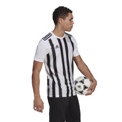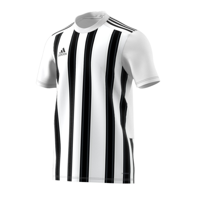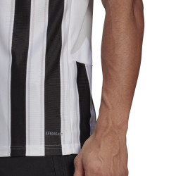 Koszulka meczowa adidas potwierdza powszechne zamiłowanie do pasków. Zastosowany w niej lekki materiał AEROREADY doskonale odprowadza wilgoć. Tkanina usiana cienkimi, błyszczącymi paskami gwarantuje wyjątkowy styl. Ten produkt jest wykonany z Primegreen, linii wysokiej jakości materiałów pochodzących z recyklingu. Jest to model pochłaniający wilgoć. Posiada ekolt w serek.