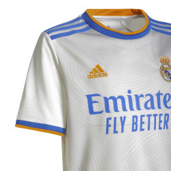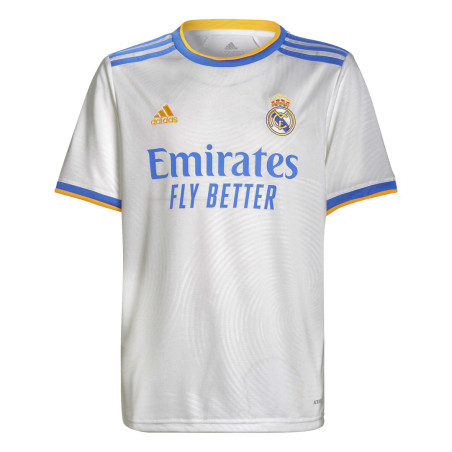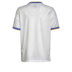 Juniorska koszulka piłkarska z kolekcji Real Madrid stworzona z myślą o kibicach, powstała na wzór fontanny na sławnym placu Madrytu. Standardowy krój zapewnia swobodę. Wykonana została z miękkiego materiału, 100 % z Poliestru i odprowadzającego wilgoć AEROREADY.. Idealna na prezent dla fana \"królewskich\" . Jest to koszulka na sezon 2021/2022.