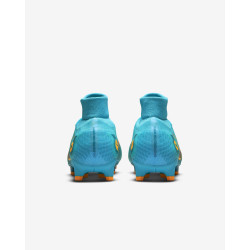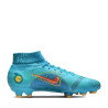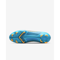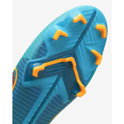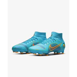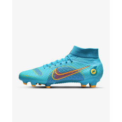 Męskie buty piłkarskie przeznaczone do gry na twardą murawę Nike Mercurial Superfly 8 Pro FG zostały wyposażone w wysokiej jakości syntetyczną cholewkę z mikroteksturą, która ściśle otacza stopę od spodu, dając użytkownikowi poczucie naturalnego dopasowania. W tych butach zastosowano system 2 płytek, który wykorzystuje korki w kształcie litery V, umożliwiając tym samym łatwe osiągnięcie prędkości. Wytłoczona, żebrowana tekstura od pięty aż po palce zapewnia wrażenie, że buty wyglądają na bardzo szybkie.