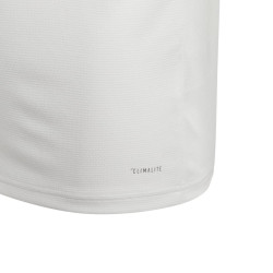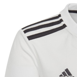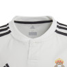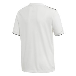 Juniorska replika oficjalnej domowej koszulki Realu Madryt na sezon 2018/19. Koszulka od adidas o standardowym, szerszym w tułowiu krój, prostym fasonie i zaokrąglonym dekolcie. Koszulka posiada krótkie rękawy i guziki przy szyi. Koszulka została wykonana z dzianiny o podwójnym splocie. Jej wstawki z siateczki pod ramionami zapobiegają nadmiernemu poceniu, a odprowadzający pot materiał Climalite zapewnia świeżość. Koszulka posiada naszyte godło Realu Madryt.