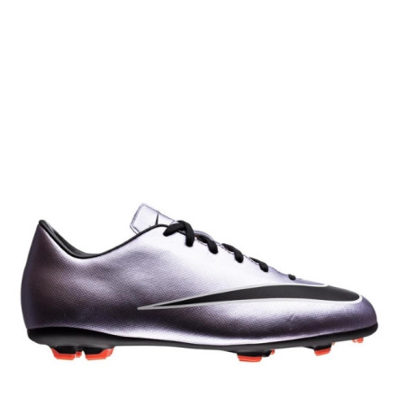 Dziecięce buty piłkarskie na twardą murawę Nike Jr. Mercurial Victory V zostały zaprojektowane z myślą o wartkiej grze, dlatego mają innowacyjny bieżnik zapewniający przyczepność i szybkość na twardej nawierzchni. Zalety Miękka i giętka syntetyczna skóra zapewnia stabilność, doskonałe dopasowanie i lepsze panowanie nad piłką Wyprofilowana wkładka odzwierciedla kształt stopy, aby zapewnić optymalną stabilizację i amortyzację przy zachowaniu niskiego profilu Profilowana gumowa podeszwa z bieżnikiem wielokierunkowym zapewnia niezwykłą przyczepność Korki zapewniające przyczepność na twardej murawie (FG) są przeznaczone do użytku na krótkiej murawie, która bywa mokra, ale nie błotnista