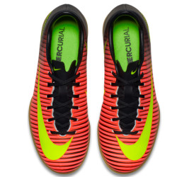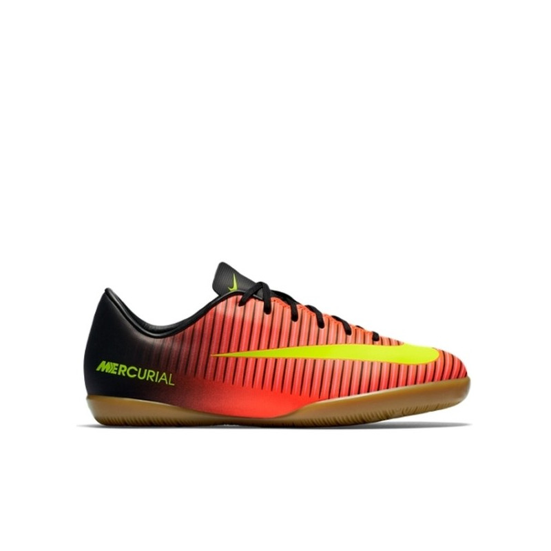 Halowe buty piłkarskie dla małych/dużych dzieci Nike Jr. Mercurial Vapor XI mają teksturowaną cholewkę i podeszwę zewnętrzną z niebrudzącej gumy, dzięki czemu zapewniają lepszą kontrolę nad piłką i przyczepność podczas gry na ulicy lub w hali. Zalety Cholewka z syntetycznej skóry z wytłoczonym poziomym wzorem daje większą kontrolęNiskoprofilowy nosek umożliwia lepsze panowanie nad piłką Antypoślizgowe wykończenie poprawia przyczepność wewnątrz buta Podeszwa zewnętrzna stworzona z myślą o grze w hali (IC) gwarantuje przyczepność na ulicy oraz w pomieszczeniach