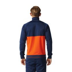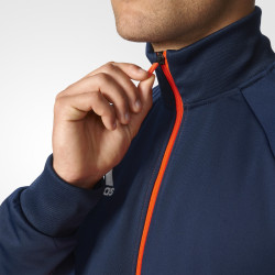 Wysokiej jakości męska bluza treningowa, Tiro 17 to model marki adidas stworzony z myślą o jak najwyższym komforcie podczas treningu. Bluza wyposażona została w lekko przedłużony kołnierz, który stanowi dodatkową ochronę, jak również idealnie dopasowuje się do ciała. Uszyto ją w technologii climacool, która odprowadza pot, zapewnia przewiew i uczucie chłodu. Na całej długości znajduje się zamek błyskawiczny. Po bokach z lewej jak i prawej stronie umieszczono dwie zapinane na zamek kieszenie. Kołnierz a także mankiety rękawów zostały wykończone elastycznymi ściągaczami. Dodatkowo wewnątrz bluza została wyściełana miękkim, przyjemnym w dotyku materiałem. Z przodu, na prawej piersi umieszczono wyszywane logo adidas, a na obu ramionach trzy charakterystyczne paski.