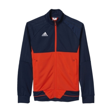 Juniorska bluza reprezentacyjna z kapturem, standardowy krój, siateczkowa podszewka, wyklejane logo adidas na prawej piersi, na obydwóch ramionach 3 charakterystyczne paski, materiał w technologii climacool odprowadza pot, zapewnia odpowiednią temperaturę, rękawki dół bluzy wykończone elastycznymi ściągaczami dla lepszego dopasowania, na całej długości zamek błyskawiczny, dwie boczne kieszenie zapinane na zamek.
