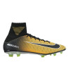 Męskie buty piłkarskie na twardą murawę Nike Mercurial Veloce III (FG) łączą w sobie kołnierz Dynamic Fit z wytłoczeniami oraz rewolucyjnym układem korków. Dzięki temu zapewniają odpowiednie dopasowanie, czucie piłki i przyczepność potrzebną podczas szybkich rozgrywek. Kołnierz w technologii Dynamic Fit łączy kostkę i stopę, gwarantując jeszcze lepszą kontrolę nad piłką. Poziome wytłoczenia zwiększają czucie piłki. Nowa konfiguracja korków opracowana z zastosowaniem modelowania komputerowego zapewnia doskonałą równowagę pomiędzy przyczepnością, momentem obrotowym i wygodą. Powłoka z tworzywa TPU na skompresowanej nylonowej płytce zapewnia trwałość. Profilowana, perforowana wkładka zapewnia amortyzację o niskim profilu, zmniejszając nacisk korków na stopę. Wykonanie: Plastik syntetyczny / Materiał poliestrowy / nylon.