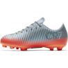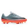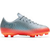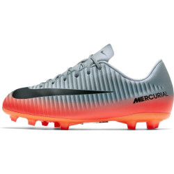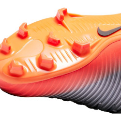 Dziecięce buty piłkarskie na twardą murawę Nike Junior Mercurial Vapor XI CR7 (FG) łączą w sobie lekką, profilowaną nylonową płytkę, rewolucyjny układ korków i wytłoczenia w cholewce, dzięki czemu doskonale sprawdzają się w szybkiej rozgrywce. Grafiki inspirowane Ronaldo nadają butom jego styl. Anatomicznie wyprofilowana płytka i konstrukcja bez języka otulają stopę, zapewniając doskonałe dopasowanie. Żebrowana powierzchnia cholewki gwarantuje doskonałą kontrolę piłki przy pełnej szybkości. Niskoprofilowa część przednia ułatwia przejmowanie piłki. Skóra syntetyczna