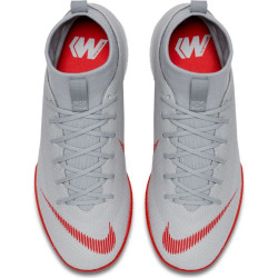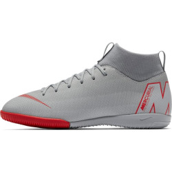 Syntetyczna cholewka w tych butach przeznaczonych do piłki nożnej na nawierzchnię halową dla starszych dzieci SuperflyX 6 Academy (IC) ściśle otacza stopę, gwarantując poczucie natychmiastowego naturalnego dopasowania. Gumowa podeszwa zewnętrzna zapewnia dynamiczną przyczepność na nawierzchniach halowych. Teksturowana powłoka cholewki tego modelu zwiększa czucie piłki przy dużych prędkościach. Podeszwa zewnętrzna wykonana została z niebrudzącej gumy odpowiada za przyczepność na nawierzchniach halowych. Podszewka w obszarze pięty o wykończeniu przypominającym nubuk stabilnie trzyma stopę i zapobiega przesuwaniu się buta.
