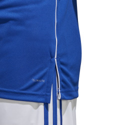 Męska koszulka piłkarska typu polo, model Core18 prawie w całości został wykonany z poliestru. Koszulka została uszyta w standardowym kroju w technologii climalite, która odprowadza pot z powierzchni skóry do zewnętrznej warstwy w celu szybszego odparowania. Pod kołnierzem znajdują się guziki za pomocą których możemy rozpiąć koszulkę. Dla lepszego dopasowania rękawy zostały wykończone elastycznymi ściągaczami.Na prawej piersi umieszczono wyszywane logo adidas.