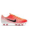 Buty do piłki nożnej Vapor 12 Academy MG to buty do piłki nożnej na różne rodzaje nawierzchni wyposażone we wbudowany język i syntetyczną cholewkę, która otacza stopę, zapewniając ścisłe dopasowanie przez cały mecz. System dwóch płytek z poduszkami zapewnia dynamikę i prędkość zarówno na naturalnej, jak i sztucznej nawierzchni. Syntetyczna, dwukolorowa cholewka z wbudowanym językiem daje stabilne dopasowanie. Mikrotekstura umożliwia zachowanie precyzji przy dużych prędkościach. Płytka z poduszkami zapewnia lepszą przyczepność.Profilowany łuk z wewnętrznym wypełnieniem odpowiada za dynamiczne wsparcie. Otaczająca palce wysoka podeszwa zewnętrzna zapobiega nadmiernemu zużyciu. Korki w kształcie litery V oraz korki wydrążone pozwalają na wszechstronność na naturalnej i sztucznej nawierzchni.