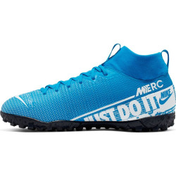 Buty Nike Mercurial Superfly 7 Academy TF Shoe posiadają miekką cholewkę syntetyczną, która otacza stopę, zapewniając dopasowanie jak druga skóra, natomiast gumowa podeszwa pomaga zwiększyć przyczepność na murawie. Wygodna podszewka oraz zastosowany w tym modelu kołnierz Dynamic Fit współpracują ze sobą, aby owinąć stopę i zapewnić dopasowanie drugiej skóry. Miękki materiał syntetyczny jest teksturowany od pięty do palców, dzięki czemu zapewnia lepsze czucie piłki. Gumowa podeszwa zewnętrzna została zaprojektowana w celu zapewnienia wielokierunkowej przyczepności na murawie.